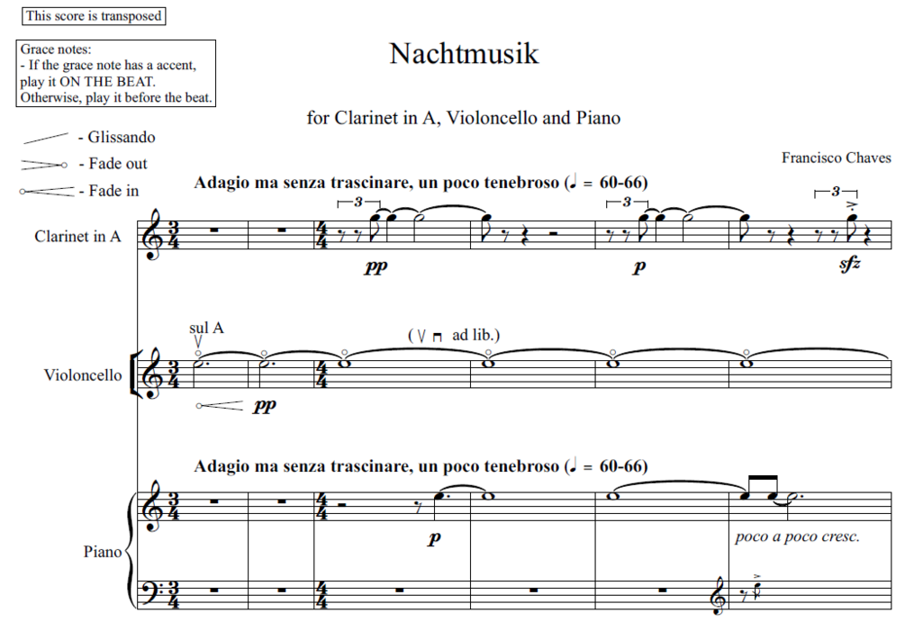 This piece was premiered by Frederic Cardoso (Clarinet), Ana Isabel Oliveira (Cello) and Carla Quelhas (Piano) and later recorded by a trio of the OCCO.