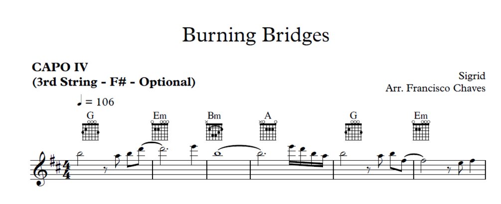 Guitar arrangement of "Burning Bridges" by Sigrid.