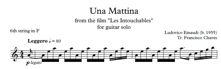 Solo guitar arrangement of Una Mattina by Ludovico Einaudi.
